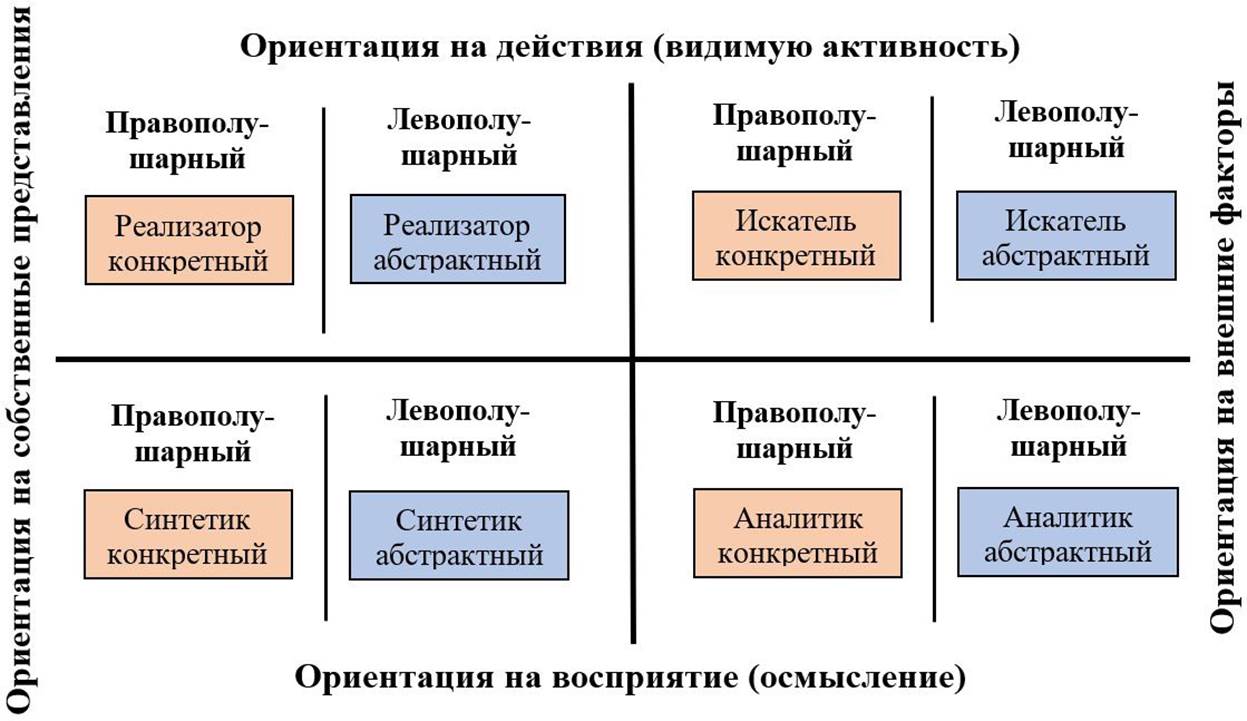 · Реализатор конкретный (правополушарный) / Реализатор абстрактный (левополушарный).
