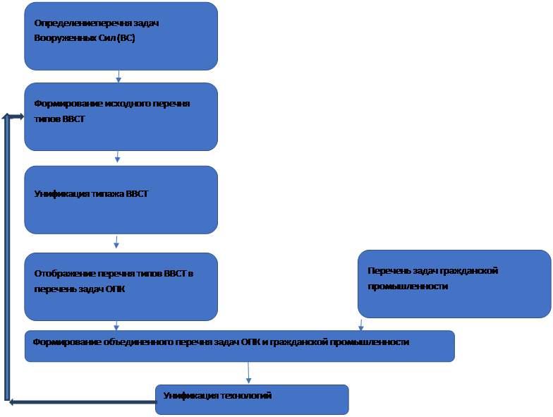 Влияние унификации рассмотрим как на уровне типов вооружений, так и на уровне технологий, используемых в отраслях промышленности. Для оценки унификации предлагается следующий алгоритм (рисунок 1).