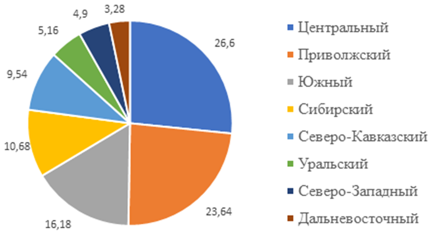 Агропромышленный комплекс Сибири занимает стратегически важное место в обеспечении продовольственной безопасности России, формируя значительную долю общероссийского производства сельскохозяйственной продукции (рисунок 1). В условиях глобальных экономических изменений, санкционного давления и необходимости импортозамещения роль эффективного управления человеческим капиталом АПК приобретает особую актуальность.