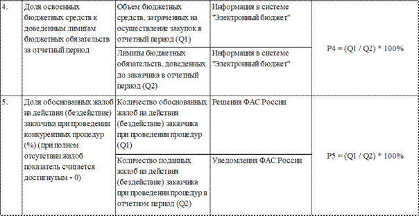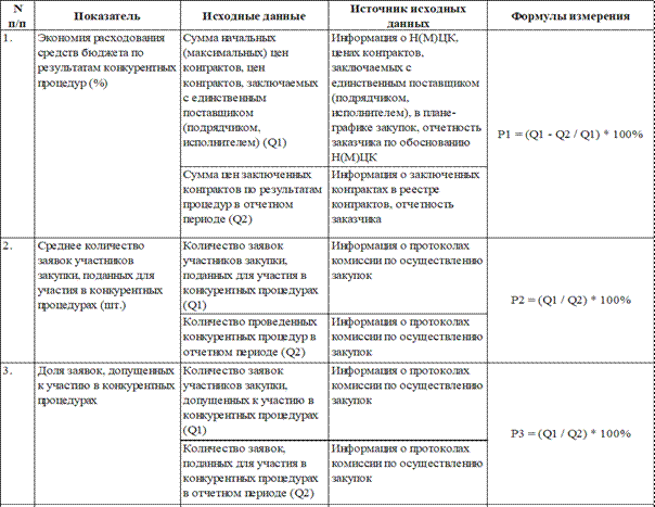 Таблица 1 - Перечень показателей эффективности закупок товаров, работ и услуг, утвержденных ФАС РФ.