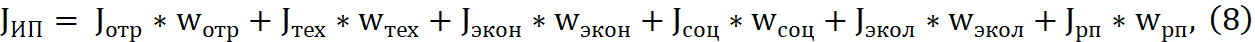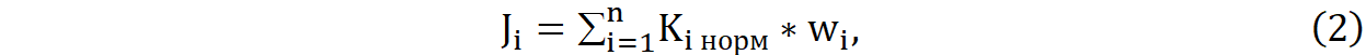 определению весовых коэффициентов (формула 3) и расчёту интегрального
