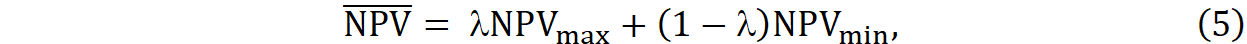 Обычно при проектировании предпочтения инвесторов, не склонных риску, отражает принадлежность l к интервалу [0; 0,5]. Чаще всего в рекомендациях можно встретить значение l = 0,3, что свидетельствует о умеренно-пессимистических предпочтениях экспертов. Так эксперты дают себе некий «запас прочности», предотвращая ситуации естественных отклонений, однако не стоит делать подобные ухудшения с большим отклонением, поскольку это может затруднить аналитику довольно успешных проектов.