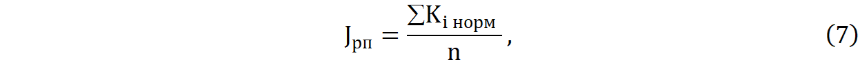 Для получения итогового весового значения коэффициенты, полученные от разных экспертов, необходимо усреднить. Далее с помощью формулы (2) производим интегральный расчёт групповых показателей. Полученные значение изменяются в интервале от 0 до 1. Переводя их в процентное соотношение, наглядно получаем уровень эффективности из 100 процентов.