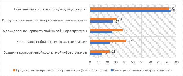 Рисунок 3. Опрос о проводимых мерах по решению проблемы кадрового дефицита в аграрном бизнесе России, %