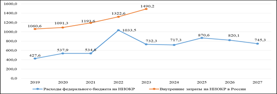 Финансирование фундаментальных и прикладных научных исследований является одним из существенных условий инновационного и технологического развития. Недостаточность выделения государственных средств грозит стагнацией современной науки, в связи с чем страны, стремящиеся к технологическому лидерству, ставят вопрос финансирования в качестве одного из базового приоритета, в отличие от России, у которой на протяжение ряда лет планирование бюджетных средств явно недостаточно [26; 27].
