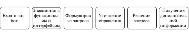 Клиент, обращаясь к чат-боту за решением своей задачи, проходит 6 ключевых этапов, которые являются универсальными для любой отрасли и пользовательского сценария. Они представлены на рисунке 1.