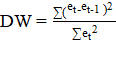 Важным этапом анализа модели является проверка остатков на автокорреляцию. Она осуществляется по формуле Дурбина Уотсона (2).