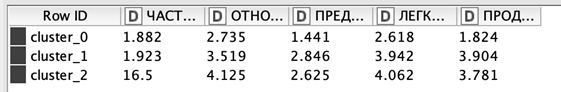 Для выделения типовых групп пользователей чат-ботов и их особенностей был использован метод кластерного анализа, который с помощью программного обеспечения «KNIME». В ходе его выполнения были испробованы различные комбинации разделения пользователей с помощью методов иерархической кластеризации и k-средних. Наиболее удачным вариантом стало выделение 3 кластеров клиентов по признакам частоты взаимодействия, отношения к чат-ботам, легкости во взаимодействии с ними, лояльности, проявляющейся в продолжении общения при возникновении трудностей, взаимодействия с технологией в профессиональной сфере и возраста респондентов.