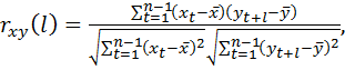 4. Вычисляется коэффициент кросс-корреляции Пирсона между фрагментом ряда опережающего индикатора и соответствующим фрагментом ряда темпа роста промышленного производства (или другого быстрого индикатора экономической безопасности):