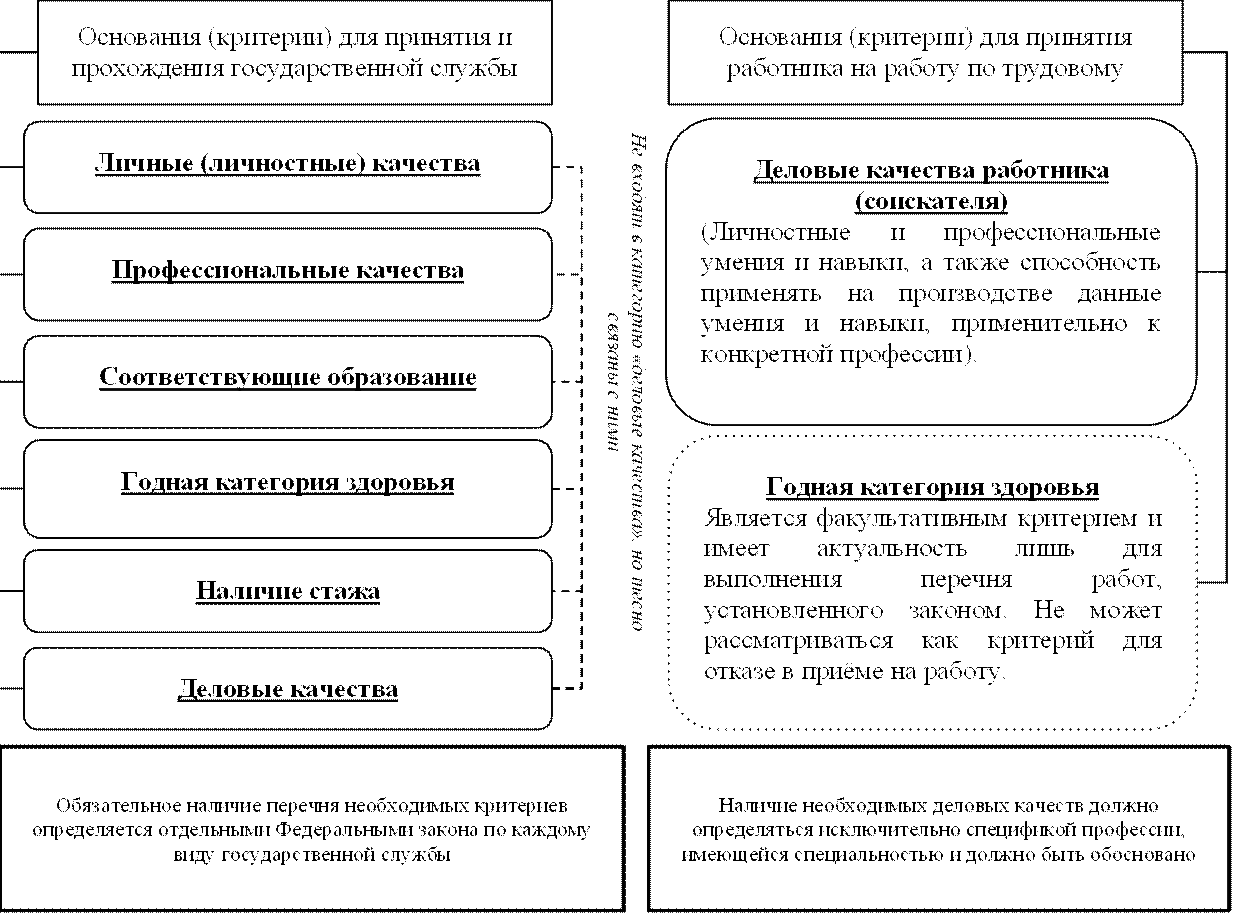 Рис. 1 Различие необходимых категорий в государственной службе и в трудовых отношениях