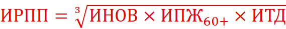 Индекс развития профессионального потенциала (ИРПП) рассчитывается через агрегирование трех представленных индексов с помощью среднего геометрического, что позволяет соблюсти баланс между составляющими индекса и избежать компенсации низких значений одних элементов за счет высоких значений других. Методология агрегирования заимствована из подхода Программы развития ООН (ПРООН) к расчету индекса человеческого развития [22]. Итоговая формула индекса развития профессионального потенциала (ИРПП) выглядит следующим образом: