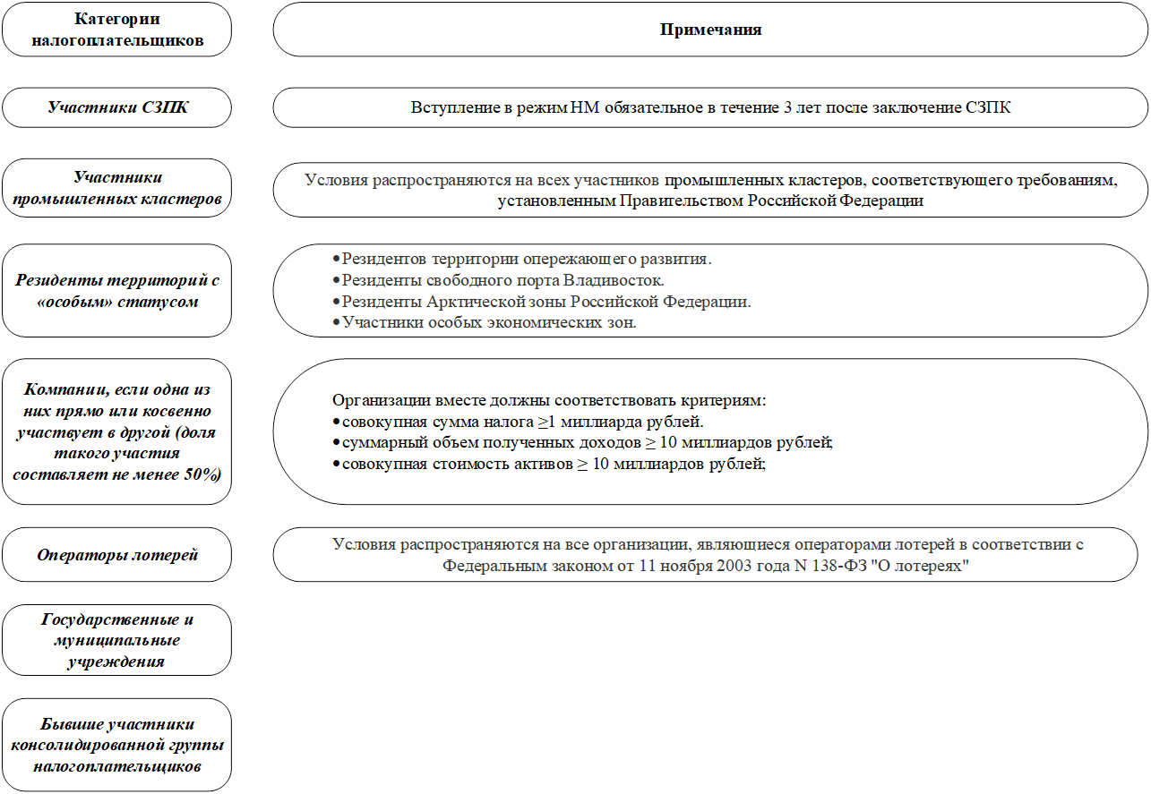 Рисунок 3 – категории налогоплательщиков, для которых соответствие суммовым критериям не является обязательным для подачи заявления о проведении налогового мониторинга