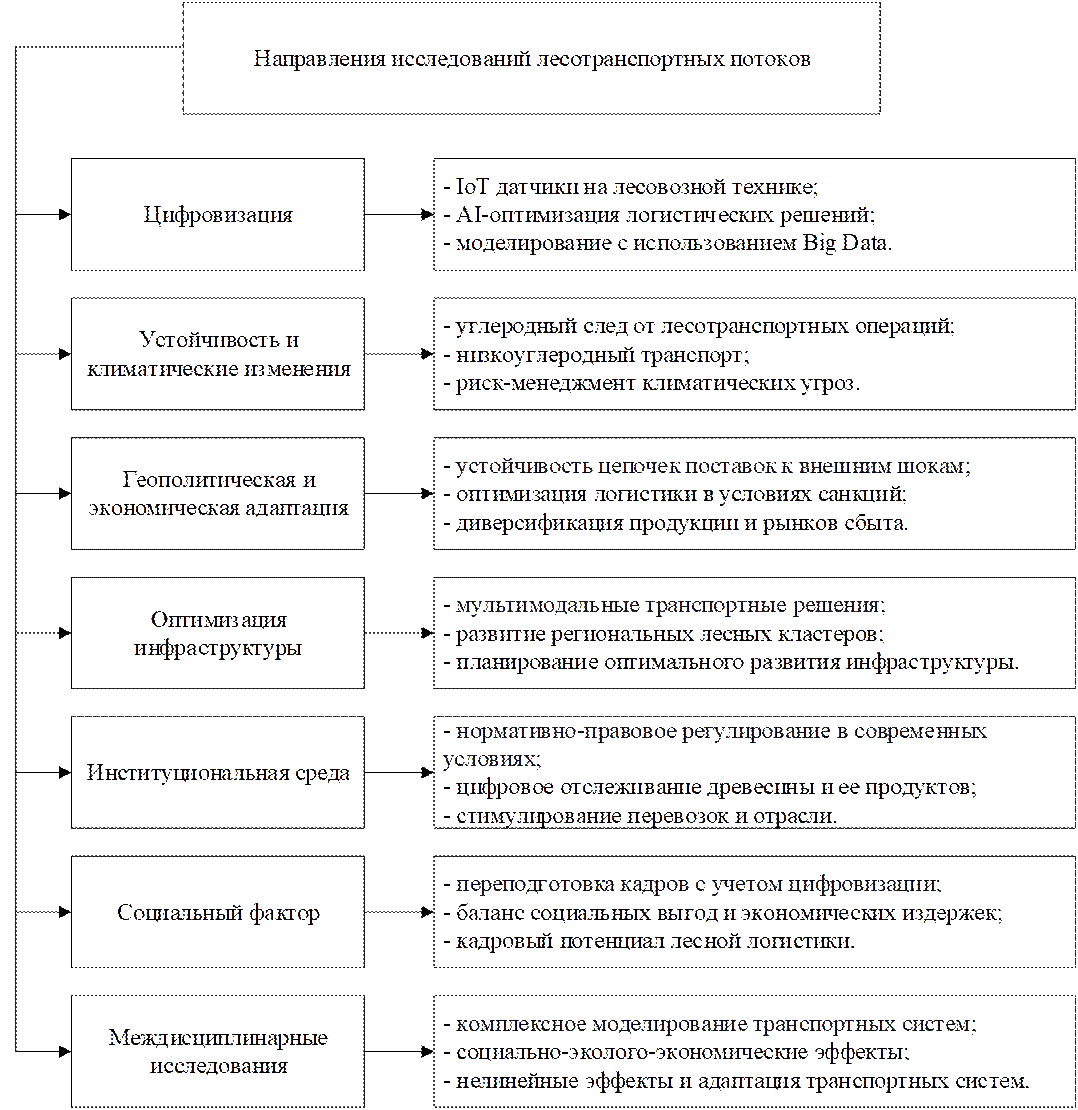 Ключевые слова: лесная отрасль, лесотранспортный поток, эффективность, направление исследований, методика, модель, научный инструментарий