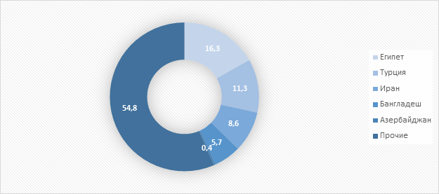 В 2024 году основные импортеры российского зерна остались практически прежними, но в результате реорганизации логистических маршрутов произошла корректировка в их долях. Лидирующую позицию в списке ведущих импортеров российских зерновых культур занимает Египет, повысив закупки на 103,8% (+8,3 млн. тонн) до 16,3 млн т. Второе и третье место занимают Турция и Иран, увеличившие импорт зерновых культур на 18,9% (+1,8 млн. тонн) и 19,4% (+1,4 млн. тонн) до 11,3 млн. тонн и 8,6 млн. тонн соответственно [4] (рис. 17).