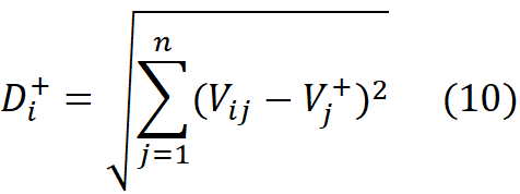 евклидово расстояние от i -го региона до положительного идеального решения;