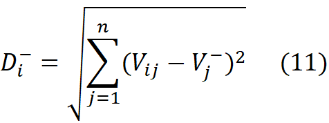 евклидово расстояние от i -го региона до отрицательного идеального решения;