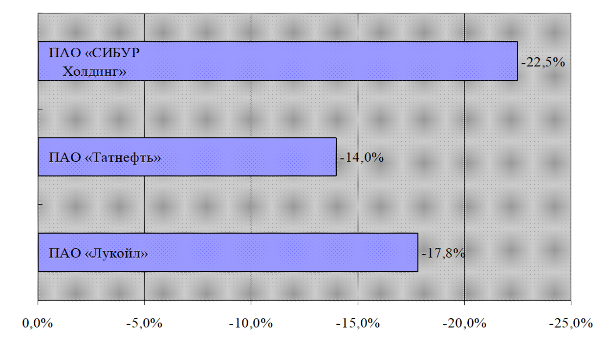 По данным отчетов об устойчивом развитии нефтегазовых компаний, можно отследить полученный эффект от мероприятий по сокращению выбросов парниковых газов в 2024 год относительно 2017 года ПАО «СИБУР Холдинг» за 2017–2024 гг. сократил выброс парниковых газов на 22,5%, ПАО «Лукойл» – на 17,8%, а ПАО «Татнефть» – на 14%. Стоит отметить, что ПАО «СИБУР Холдинг» к 2025 году достиг запланированной углеводной нейтральности [18].