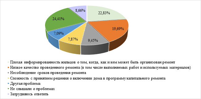 Рисунок 1 — Результаты опроса ВЦИОМ собственников МКД для выявления проблем реализации программ капитального ремонта 2021 г. (составлено автором по материалам ВЦИОМ [12])