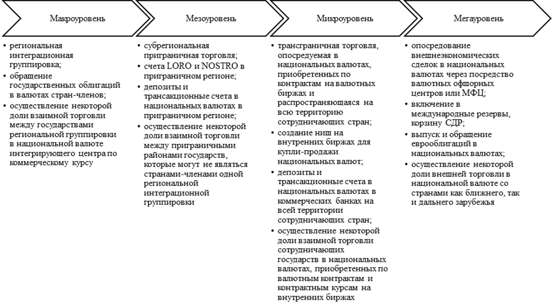 Рисунок 1. Механизм многоуровневой интернационализации валюты