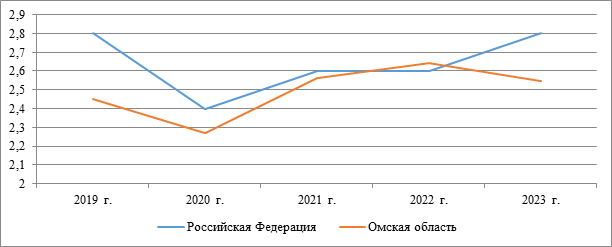 В настоящее время за счет внимания государства к развитию туристической отрасли в стране отмечается рост количества туристических поездок, из них до 90% приходится на внутренний туризм [8]. Количество туристических пакетов, которые реализованы гражданам России по территории страны, имеет положительную динамику как в целом по стране, так и в Омской области.