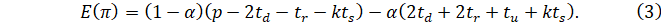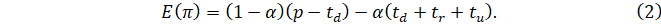 Ожидаемая продавцом прибыль от реализации единицы товара ненадлежащего качества равна математическому ожиданию прибыли, то есть её значению, взвешенному по вероятностям двух исходов: 1) покупатель обнаружит недостатки товара; 2) покупатель не обнаружит недостатки товара: