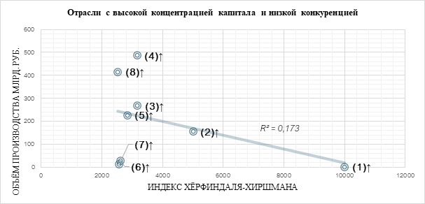 концентрацией капитала и низкой конкуренцией