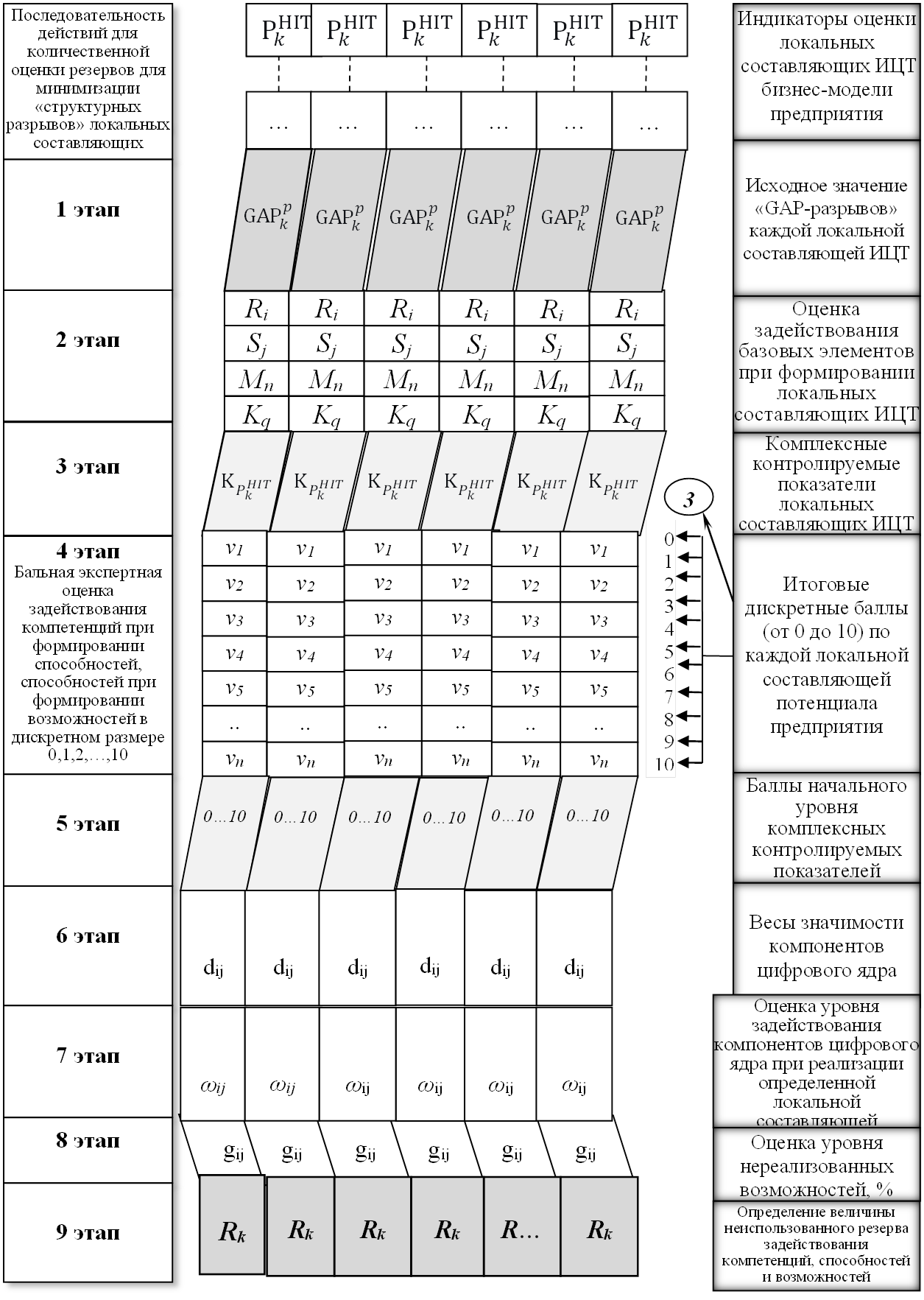 Согласно предложенному подходу, количественная оценка величины неиспользованного резерва сокращения «структурных разрывов» ИЦТ (рис. 2) осуществляется по следующим этапам: