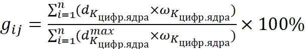 Перемножение значений dij на весы значимости (iij) комплексных контролируемых показателей отдельной локальной составляющей дает оценку уровня нереализованных возможностей (gij), сумма значений этих индексов дает итоговый индекс контролируемых показателей, на основе которого осуществляется оценка величины нереализованного потенциала индекса цифровой трансформации бизнес-модели предприятия розничной торговли: