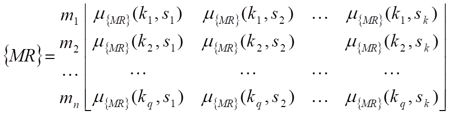 Для реализации данного подхода через R = {r1, r2, r3 ..., ri} обозначим множество локальных составляющих ИЦТ, через М = {m1, m2, m3 ..., mn} – множество возможностей, через S = {s1, s2, s3 ..., sk} – множество способностей, а через K = {k1, k2, k3 ..., kq} – множество компетенций, тогда установленные группы отношений могут быть заданы соответствующими матрицами: {KM}, {SM}, {MR}.