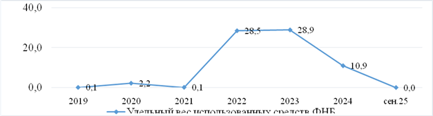 Рис. 2. Динамика удельного веса использованных средств Фонда национального благосостояния в общем объеме средств Фонда национального благосостояния
