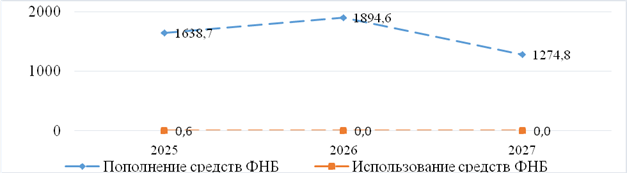 Рис. 3. Динамика использования средств Фонда национального благосостояния за 2025-2027 гг.(плановые значения), млрд рублей
