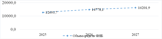 Рис. 5. Динамика общего объема средств ФНБ на конец года за 2025-2027 гг. (плановые значения), млрд рублей