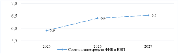 Рис. 7. Соотношение средств ФНБ и ВВП за 2025-2027 гг., %
