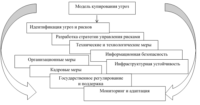 Механизмами реализации технологической безопасности для обеспечения экономической стабильности выступают: защита цифрового двойника и интеллектуальной собственности, обеспечение непрерывности производственного процесса, снижение операционных и репутационных рисков, управление логистикой и цепочками поставок, правовое и кадровое обеспечение [6] (Bylyeva, 2023).