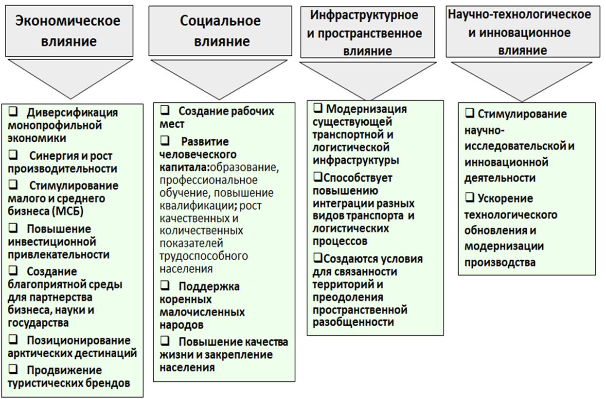 Рис. 2 Влияние туристских кластеров на социально-экономическое развитие арктических регионов России.