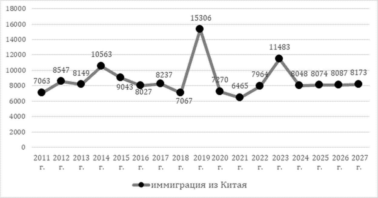 Рисунок 2 - Прогноз иммиграции из КНР до 2027 года, человек