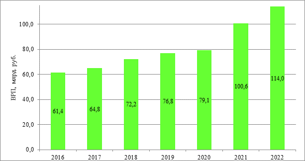 Рисунок 1 – Объем научной и образовательной деятельности в Пермском крае за 2016-2022 годы, млрд. руб.
