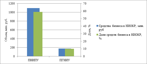Колоссальный отрыв ПНИПУ от ПГНИУ по объемам НИОКР, по нашему мнению, отражает повышенный коммерческий интерес предпринимательских структур региона к потенциалу и результатам научно-образовательной деятельности Пермского национального исследовательского политехнического университета, получивших практическое применение в отраслях реального сектора экономики.