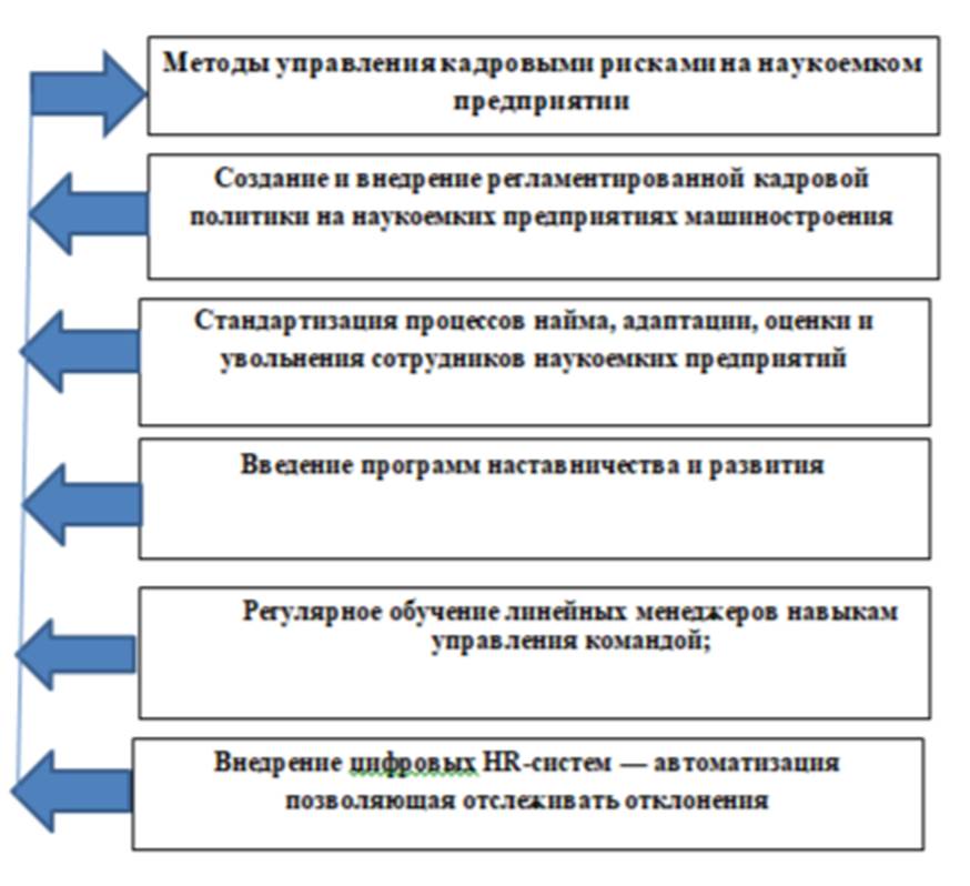Рисунок 1 Методы управления кадровыми рисками на наукоемком предприятии (сформировано автором)
