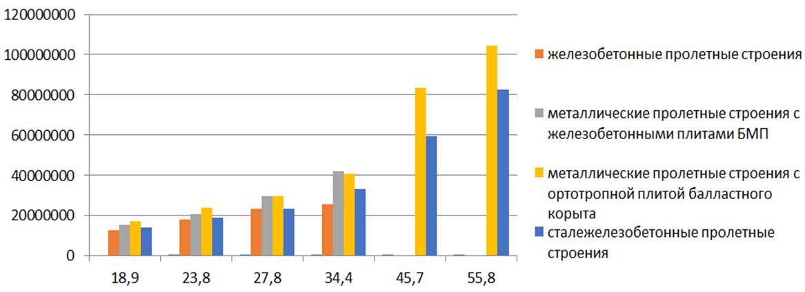 Исследования, выполненные авторами настоящей статьи, показали, что применение сталежелезобетонных пролетных строений приводит также к экономическому эффекту в силу их меньшей стоимости по сравнению с металлическими аналогами (рис. 1.