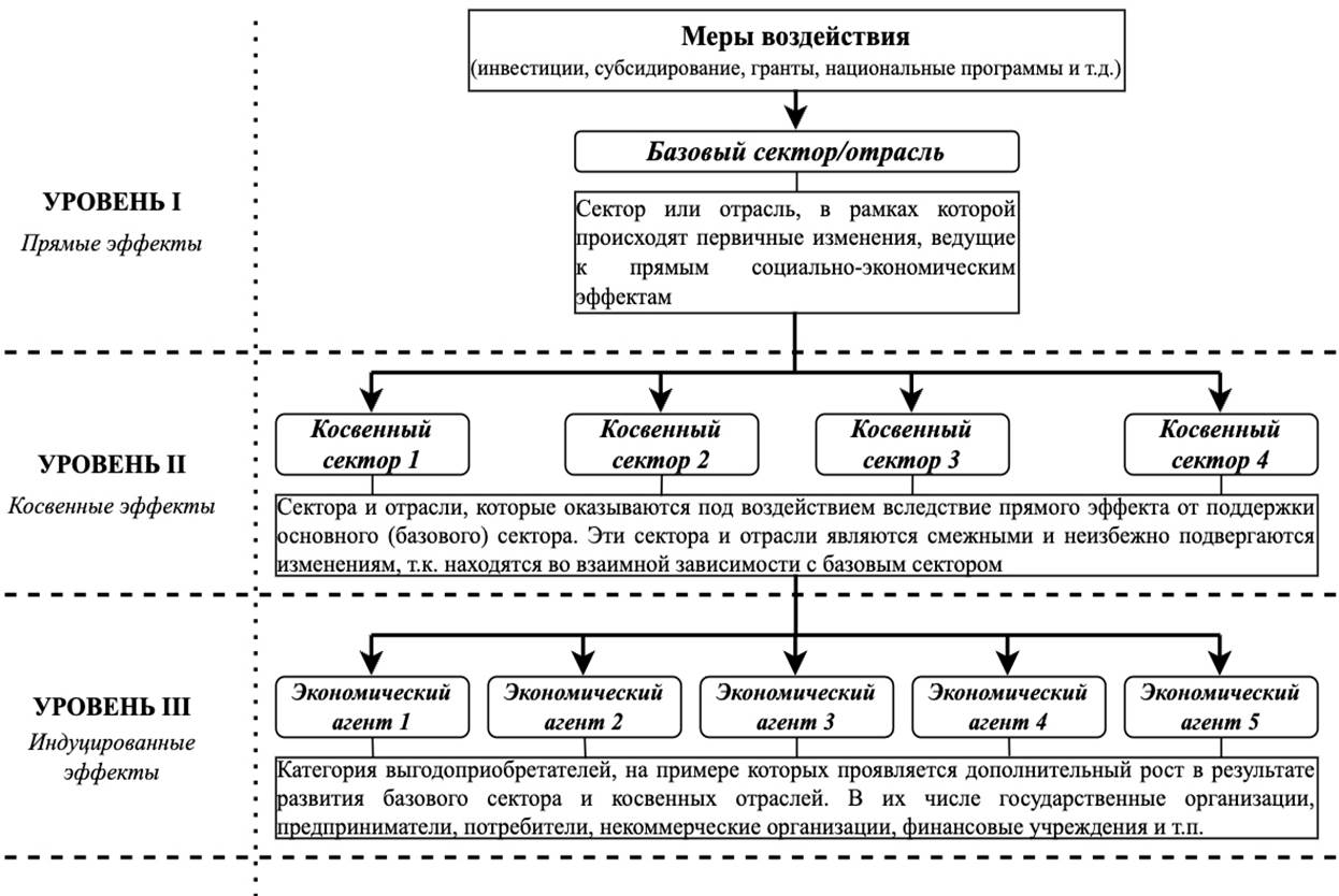 2. Визуализации и детализации прямых, косвенных и индуцированных эффектов акселерации, возникающих на разных уровнях региональной экономической системы.