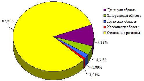 По состоянию на 2014 год, чуть менее пятой части произведенной на территории Украины продукции, производилось именно на юго-востоке государства (рис.1.)