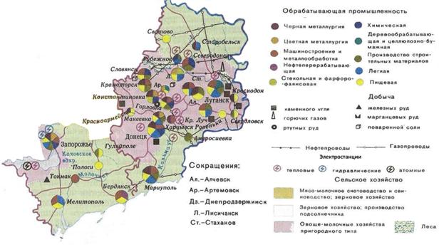 2. Запорожская область также всегда ориентировалась на промышленность (с долей чуть более 76% от всего объема произведенной продукции в 2014 году), но с несколько иным уклоном. Помимо металлургической отрасли, ключевое место в которой занимает «Запорожсталь», определяющую роль в регионе играли машиностроение (в т.ч. автомобилестроение) и энергетика (Запорожская АЭС). Территория Запорожской области так же характеризуется развитой сетью водного и железнодорожного транспорта. Сельское хозяйство в Запорожье более развито, нежели на территории соседнего Донбасса.