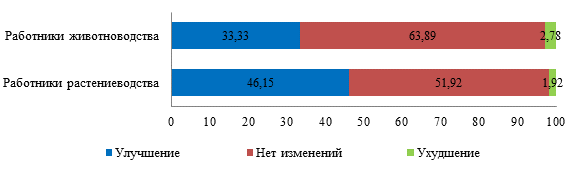 Рисунок 5- Изменение качества выполняемых работ работниками растениеводства и животноводства