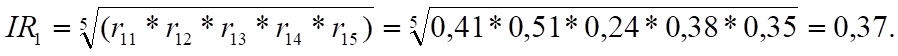 б) определение интегральных индексов риска по совокупности определяющих факторов (применительно к регионам А, Б, В), возникающих в ходе маркетингово-поведенческой адаптации бизнеса к требованиям мобилизационной экономики, производится по формуле: