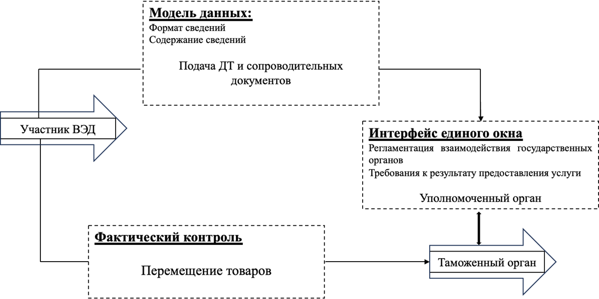 «Единое окно» – это инструмент государственного управления, позволяющий сторонам, участвующим в торговле и перевозках, подавать стандартизированную информацию, преимущественно в электронном виде, с единой точкой входа для выполнения всех нормативных требований, связанных с перемещением товаров через таможенную границу [19].
