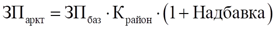 где ЗПаркт – оплата труда персонала в условиях АЗРФ; ЗПбаз – оплата труда в обычных условиях, Крайон – районный коэффициент; Надбавка – полярная надбавка к заработной плате.