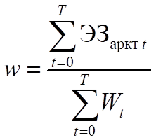 где ЭЗаркт t – эксплуатационные затраты по проекту переработки в Арктике, тыс. руб.; Wt – объем переработки отходов в t-году, тыс. тонн (тонн); T – срок реализации проекта, лет.