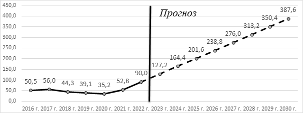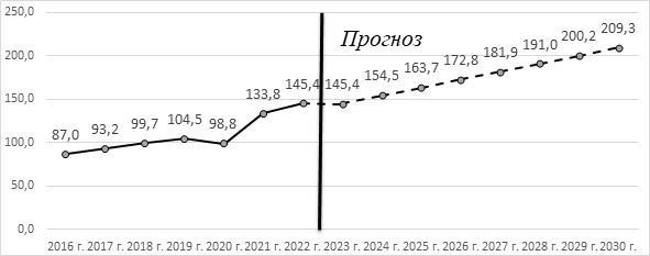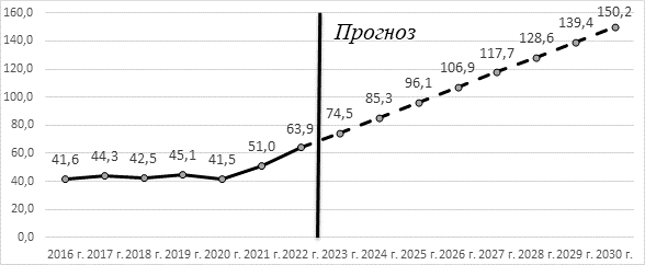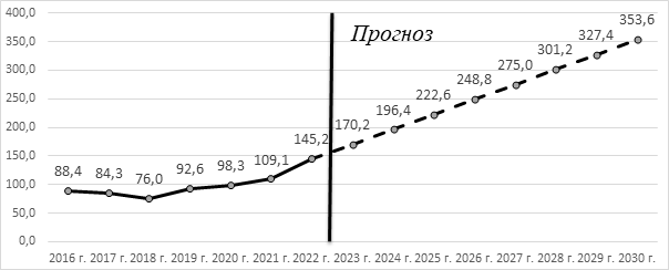 Проведенное прогнозирование разработанного показателя до 2030 года выявило устойчивую тенденцию роста, что является положительным моментом в стратегическом развитии сельских территорий.