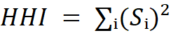 § 0,01 < HHI < 0,15 - умеренная концентрация;